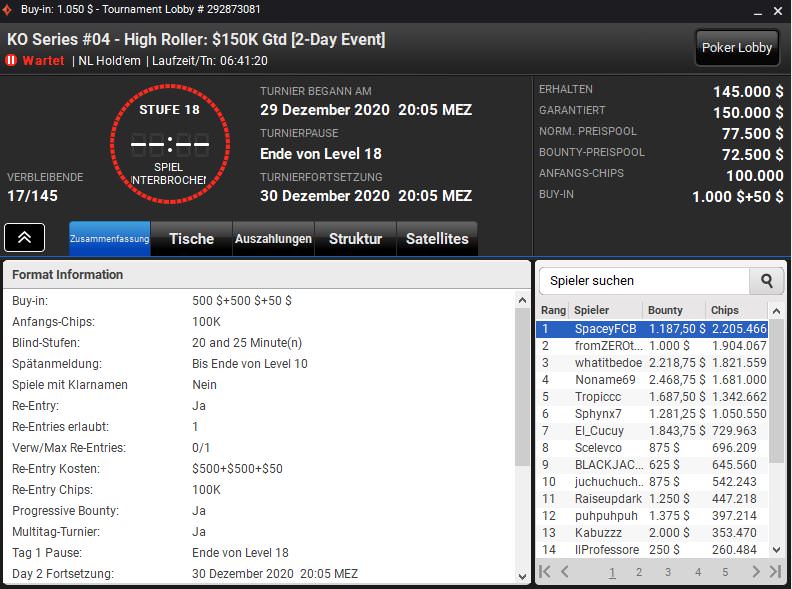 Bei den High Roller-Turnieren von Event #04 dagegen fällt die Entscheidung erst heute Abend. Beim großen $1.050 NLHE High Roller führt der Belgier Kenny SpaceyFCB Hallaert, der dieses Turnier bei der letzten KO Series im Februar gewonnen hat.