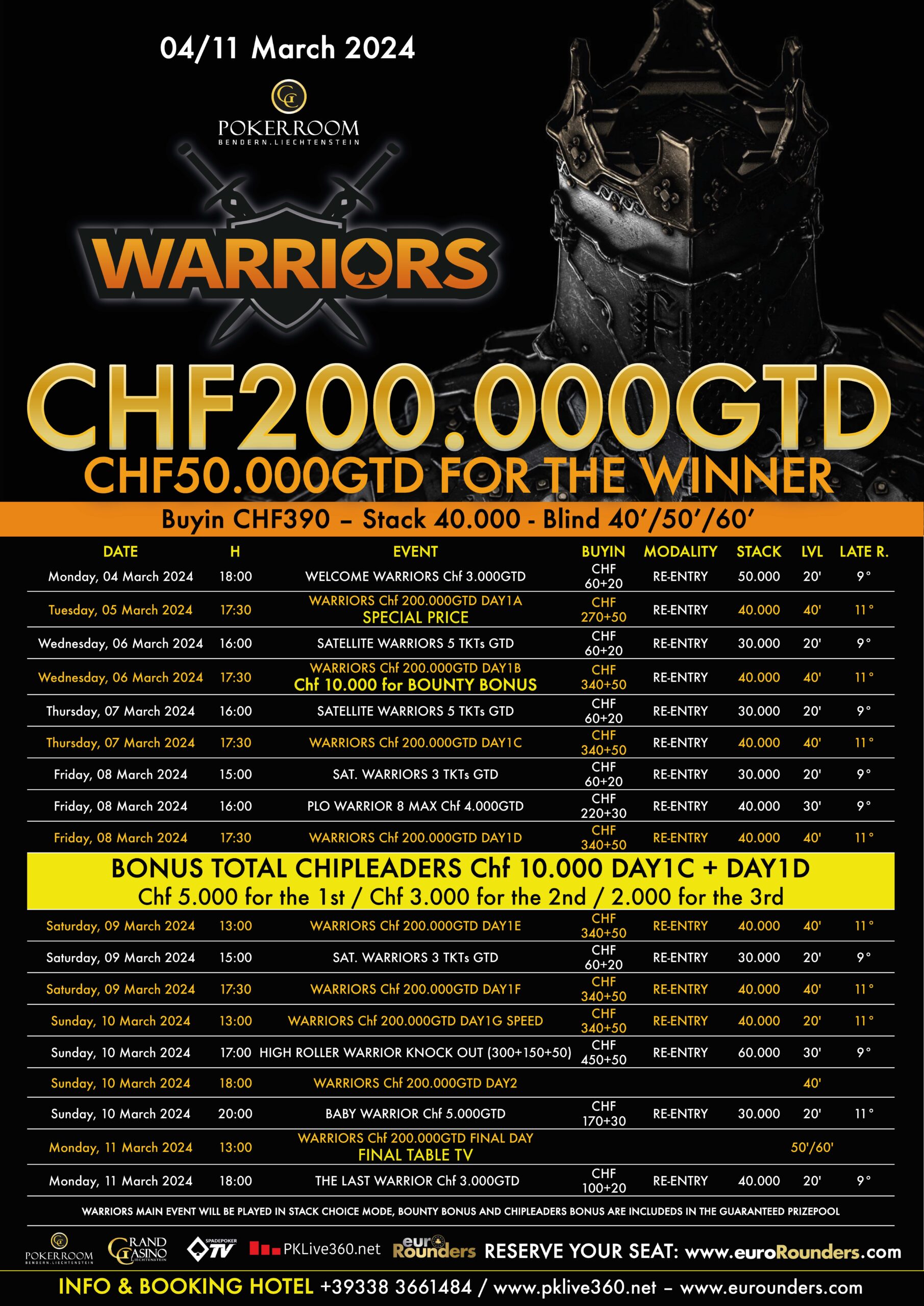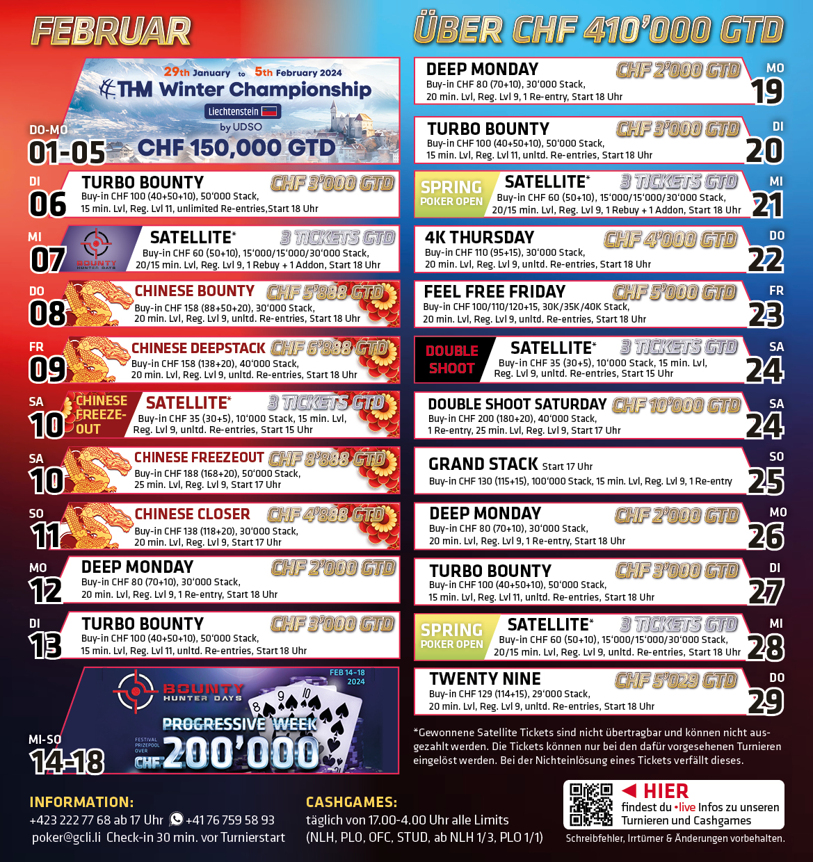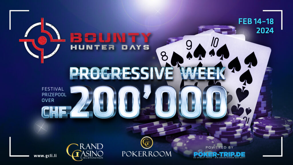 Am Samstag gibt es ab 12:30 Uhr aus dem GC Pokerroom des Grand Casino Liechtenstein den Livestream vom Finale des CHF 400+200+60 Bounty Hunter Days „Mayoman“ High Roller Events powered by Poker-Trip.de.Samstag ab 12:30 Uhr - Finale des CHF 660 BHD "Mayoman" High Rollers aus Liechtenstein! | Hochgepokert